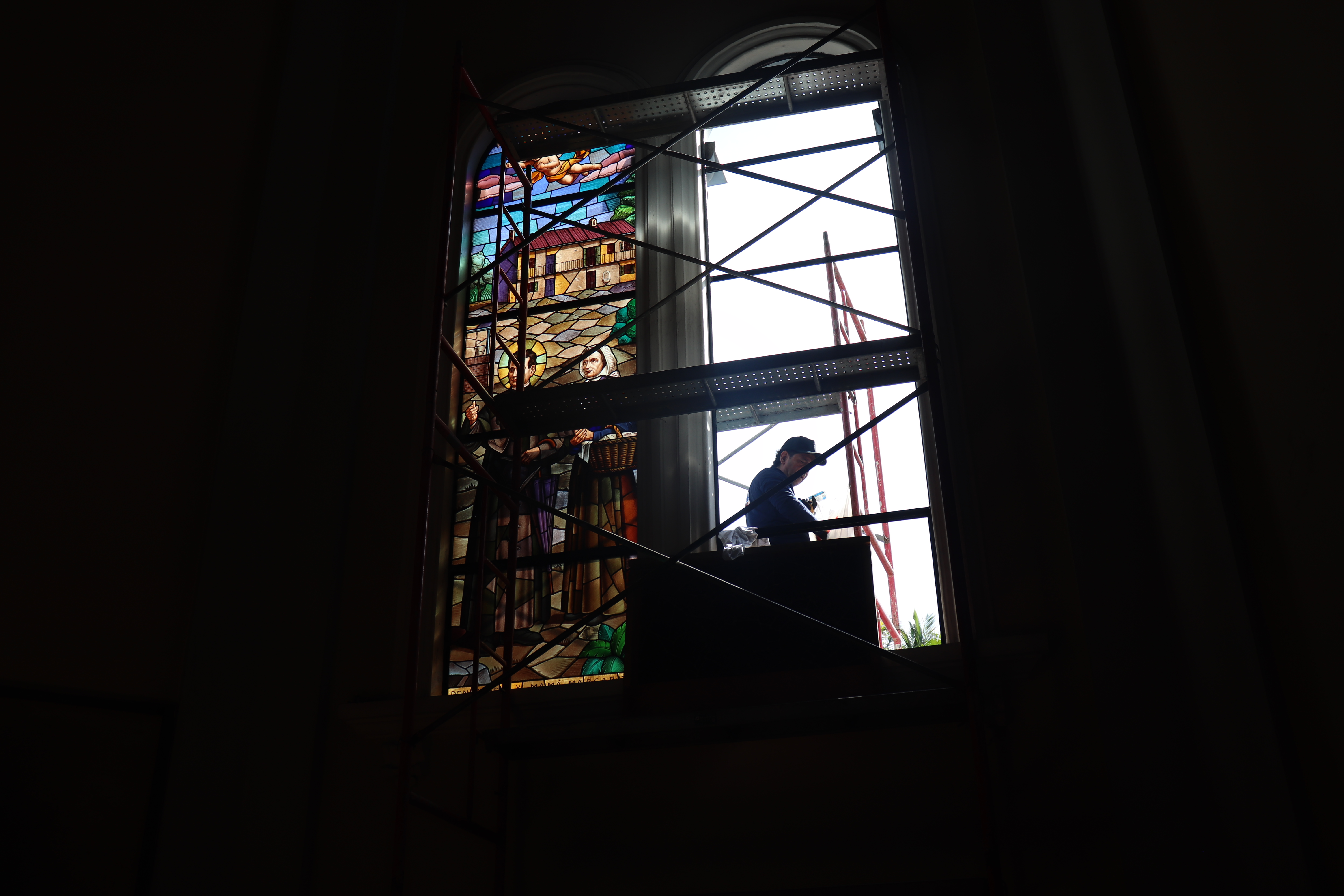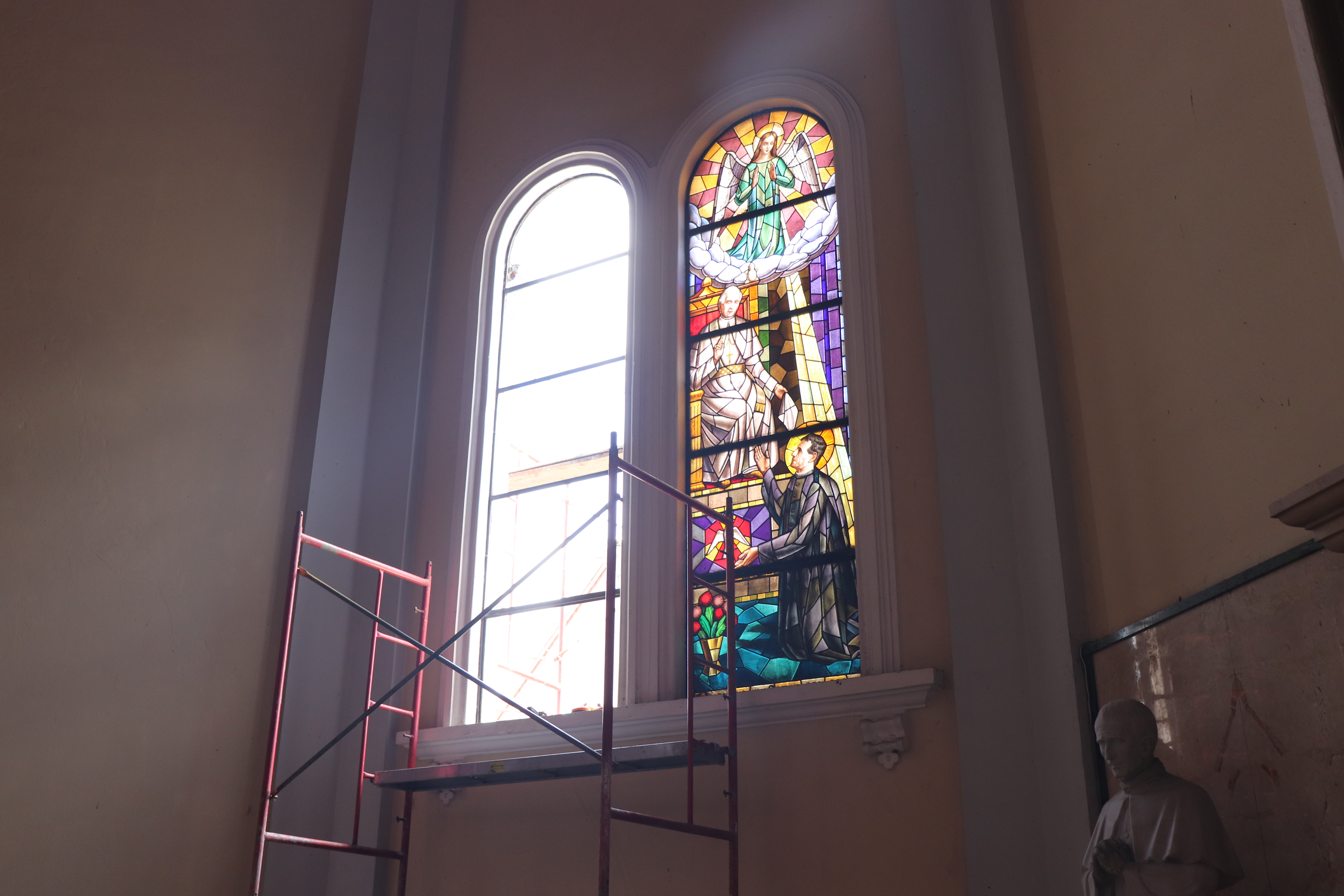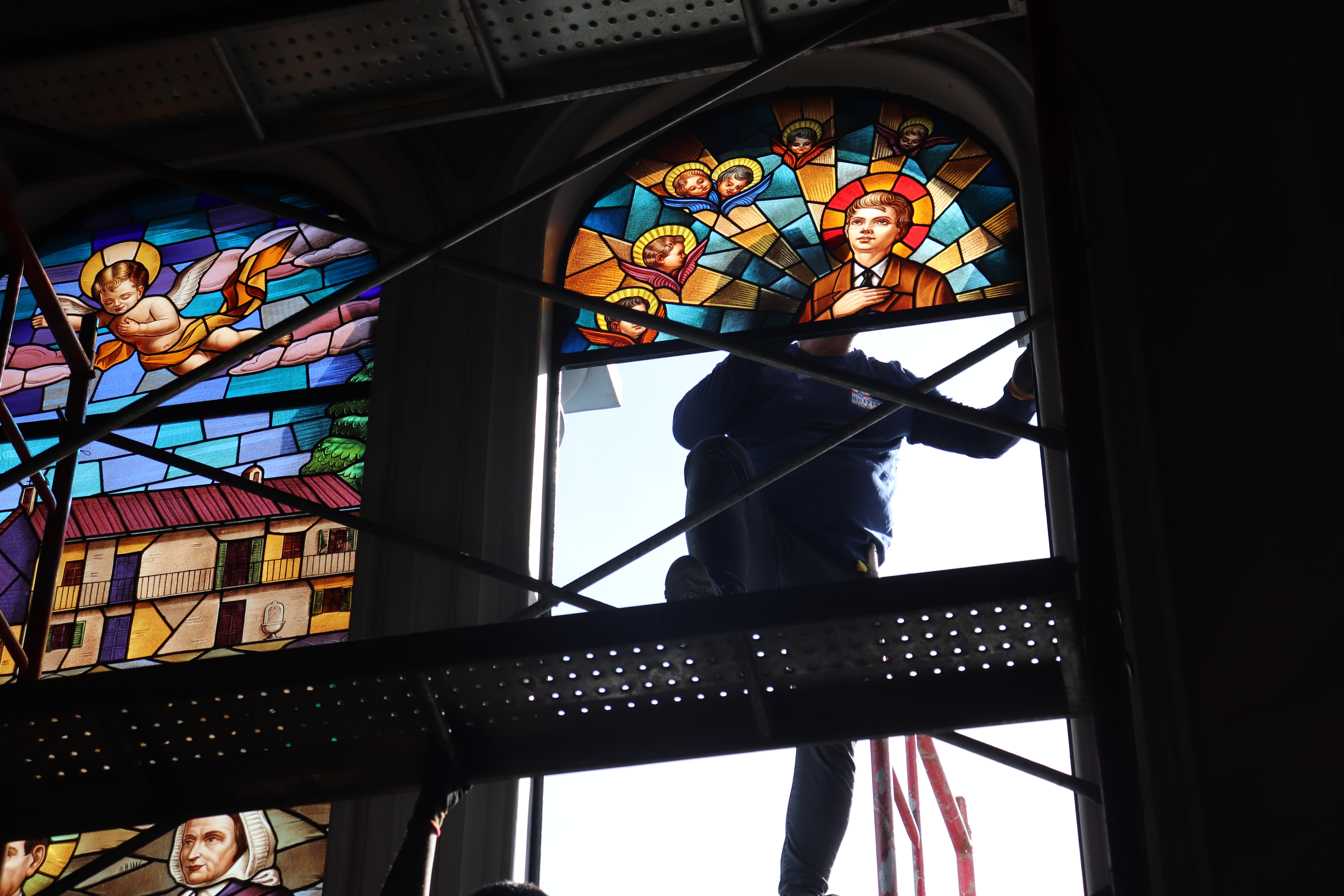 Durante el mes de julio, se ha llevado a cabo el desmontaje progresivo de los vitrales que conforman el altar de Don Bosco. Cada uno atraviesa un delicado proceso de limpieza y restauración para devolverle el brillo original a las piezas que narran escenas significativas de la vida y obra del santo.