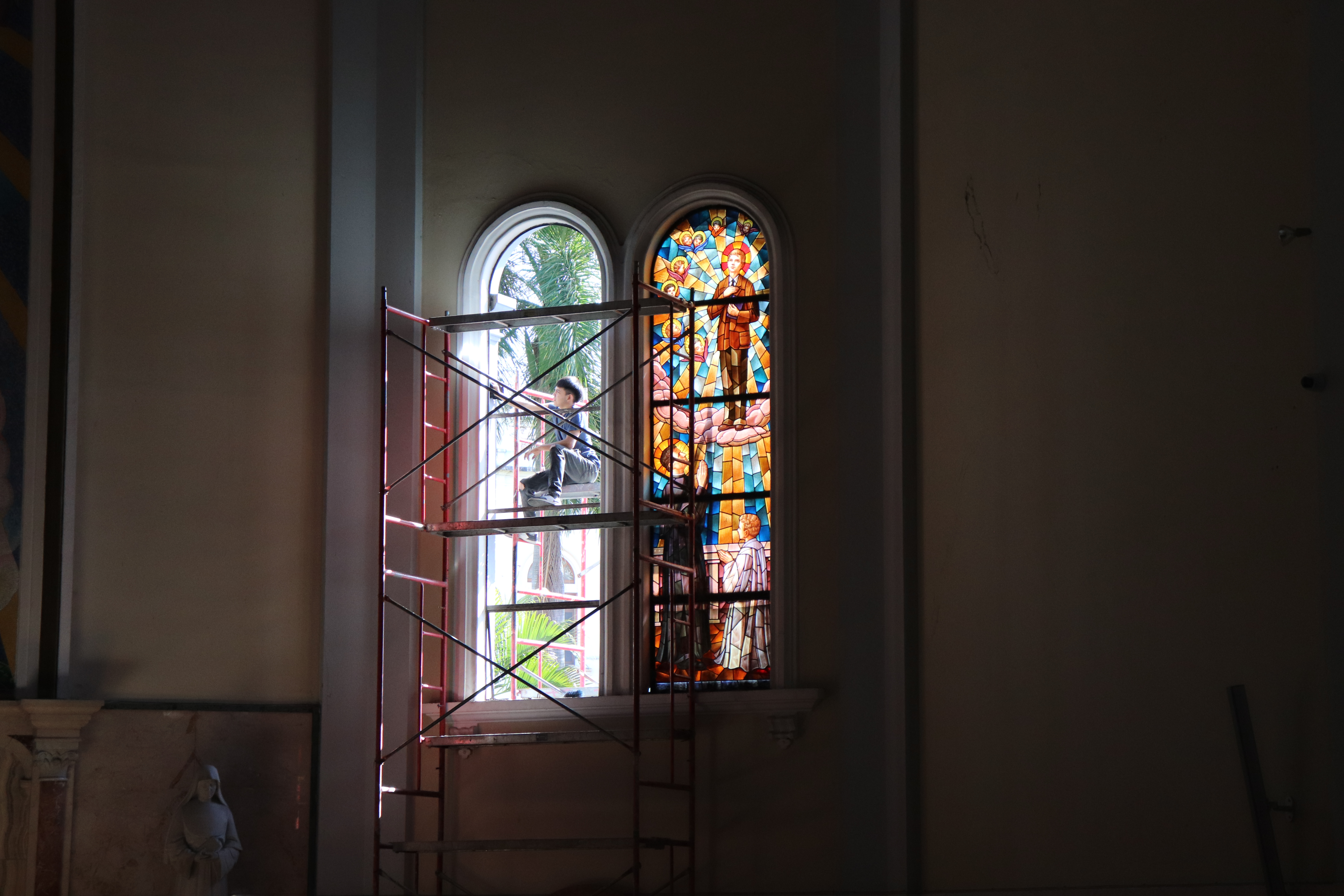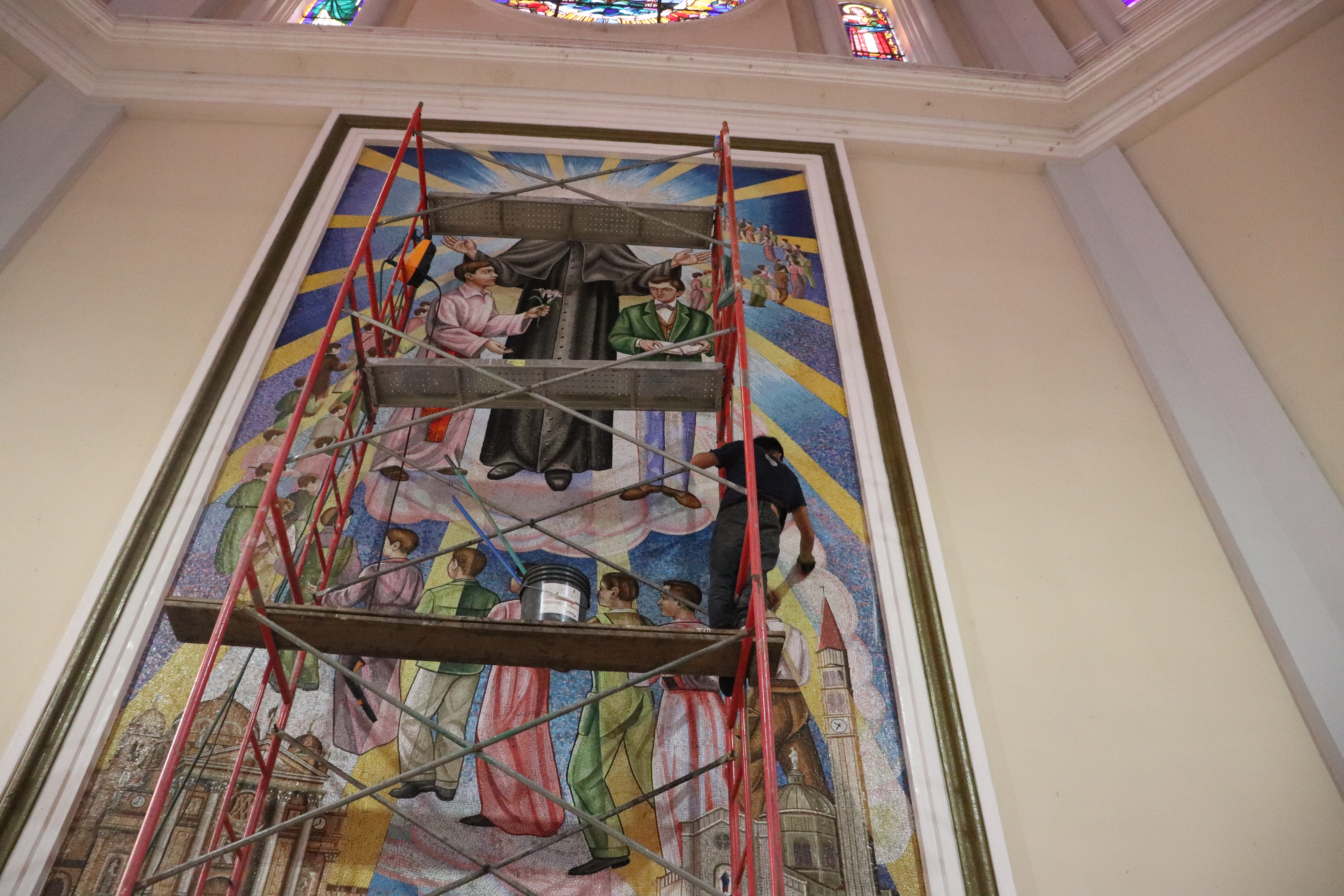 San Salvador, julio 2025.- Con el compromiso de preservar el patrimonio espiritual y artístico del templo, la Parroquia María Auxiliadora Don Rúa ha iniciado un proceso de mantenimiento integral en el altar dedicado a San Juan Bosco, el cual incluye la restauración de los vitrales que lo acompañan.