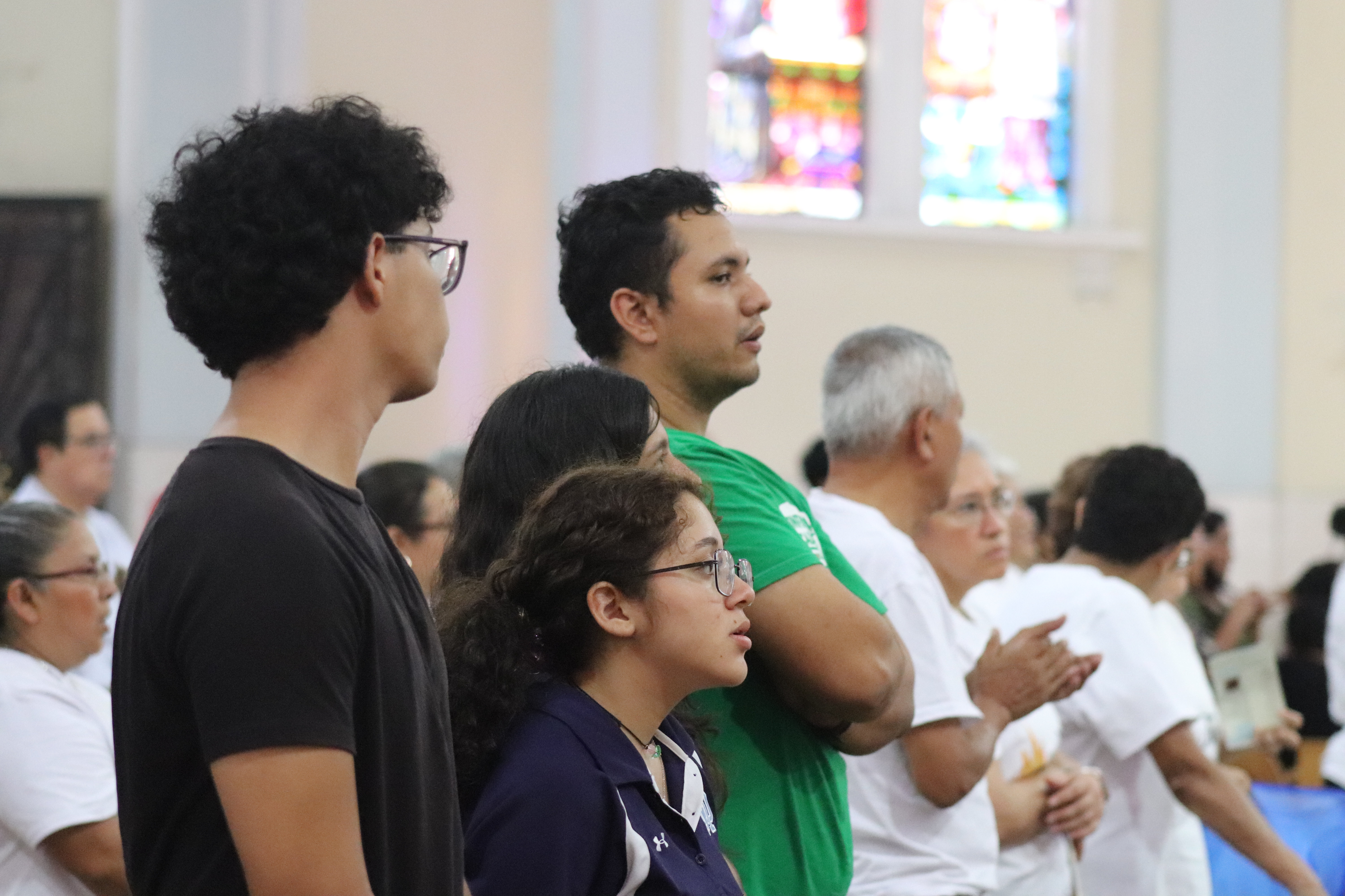 Además del recorrido, los asistentes vivieron momentos de oración comunitaria a través del rezo del Santo Rosario y cantos marianos, que prepararon el corazón para la Santa Misa celebrada a las 4:00 p.m., momento central de esta peregrinación que reunió a jóvenes, docentes y miembros de la comunidad en un mismo espíritu de fe.